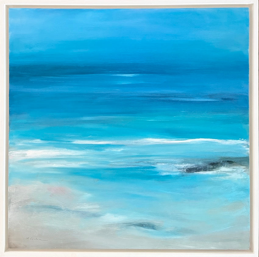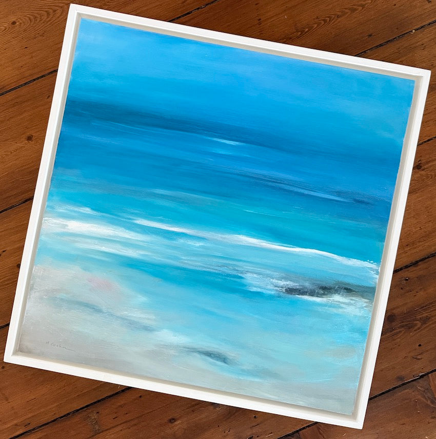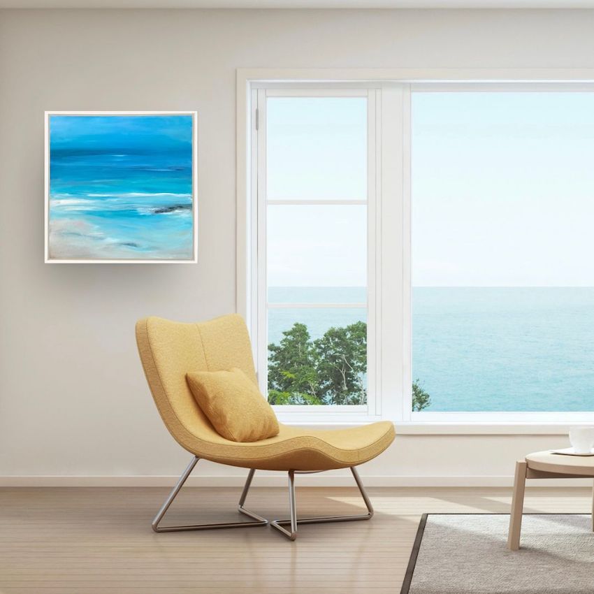 Relax and breathe in the scent of the sea with this meditative oil painting in shades of turquoise - guaranteed to soothe your mind and bring a feeling of calm into your home.